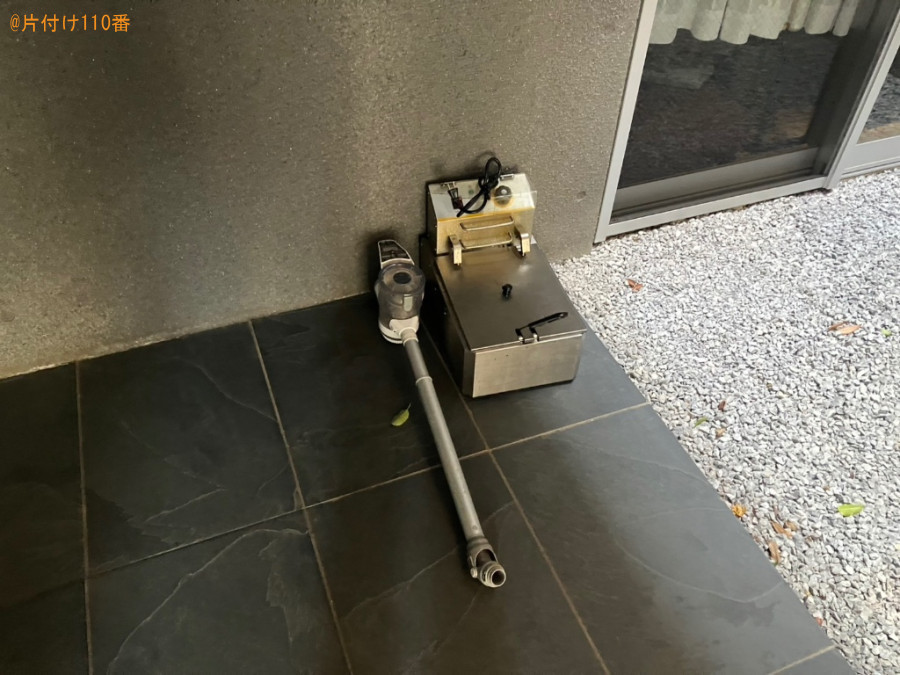 | 担当のコメント | 掃除機、電気フライヤーの処理にお困りのお客様からご相談いただきました。指定日に回収可能なことがご依頼の決め手になったようです。片付け110番では、最短即日のお伺いが可能です。不用品がございましたらまたいつでもご相談ください。 |